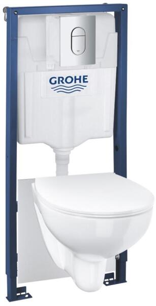 Teljes szerelőkészlet falra szerelhető WC-hez, amely tartalmaz előfalas szerelőmodult, öblítőtartályt, kerámia WC-csészét és nyomólapot. A porfestett acélváz több mint 400 kg teherbírást és hosszú távú stabilitást biztosít. A 6–9 literes öblítőtartály beállítható takarékos öblítésre a vízfogyasztás csökkentése érdekében. A GROHE Whisper technológia minimalizálja a zaj átszűrődését a szomszédos helyiségekbe. A perem nélküli (Rimless) kerámia WC-csésze könnyebb tisztítást és magasabb higiéniai szintet garantál. SoftClose funkciós WC-ülőke a csendes és sima záródásért. A dupla öblítésű nyomólap lehetővé teszi a kisebb vagy nagyobb vízmennyiség kiválasztását. A vízcsatlakozás balról, jobbról, hátulról vagy felülről lehetséges a rugalmas beszerelés érdekében. A GROHE QuickFix rendszernek köszönhetően gyors és egyszerű a szerelés, különleges szerszámok nélkül. Az öblítőtartály kondenzáció elleni szigetelése növeli a tartósságot. A TÜV tanúsítvány megerősíti a termék magas minőségét és biztonságát. Modern, fehér kivitel, amely minden fürdőszobához illik. Méretek: hosszúság 230 mm, szélesség 500 mm, magasság 1130 mm, ideális különböző helyiségekhez. Önhordó kivitelének köszönhetően kompatibilis különböző burkolattípusokkal, gipszkartonhoz is alkalmas. A csomag része egy zajcsillapító alátét a használat közbeni zaj csökkentésére.